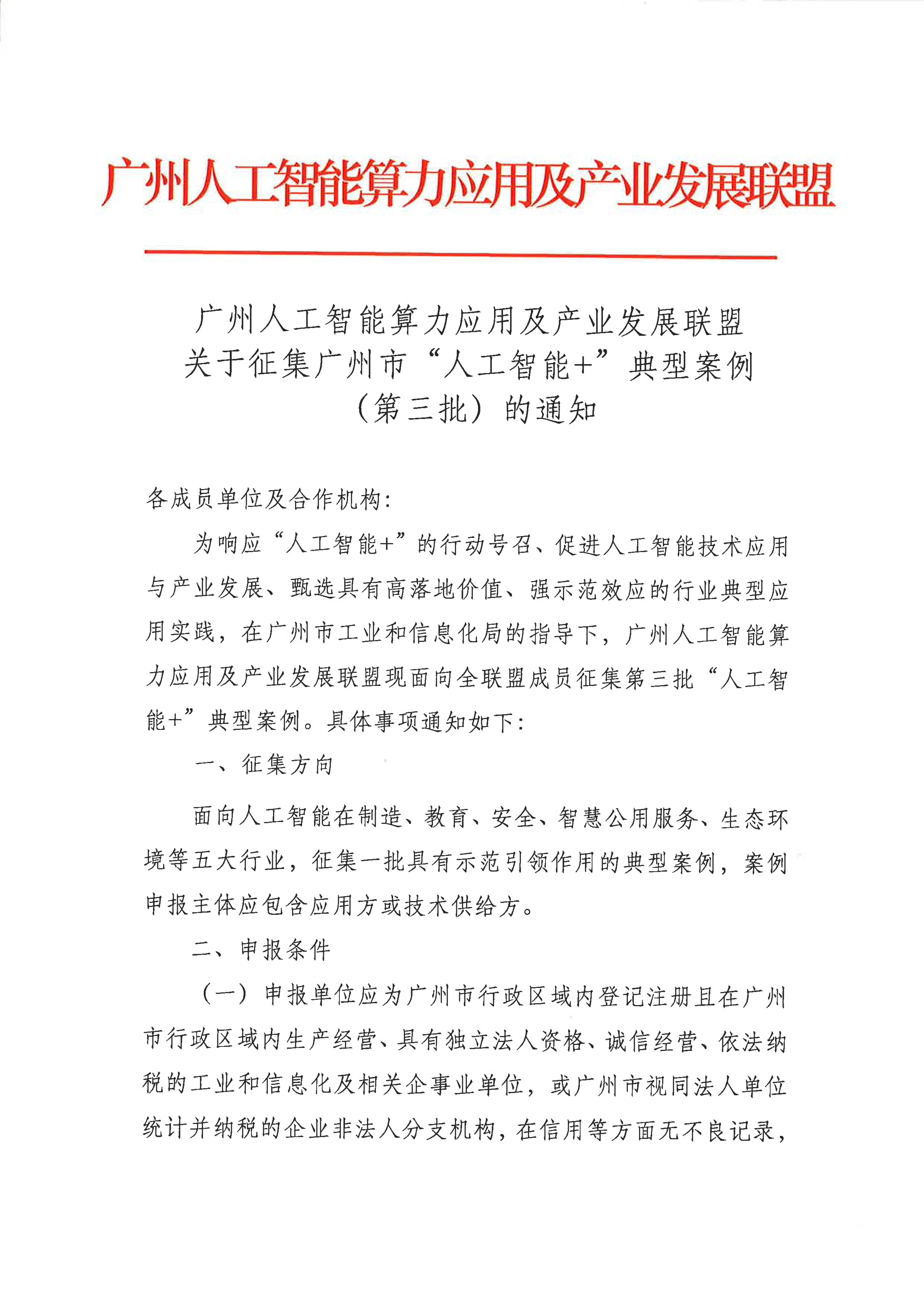 广州智算联盟关于征集第三批“人工智能+”典型案例的通知