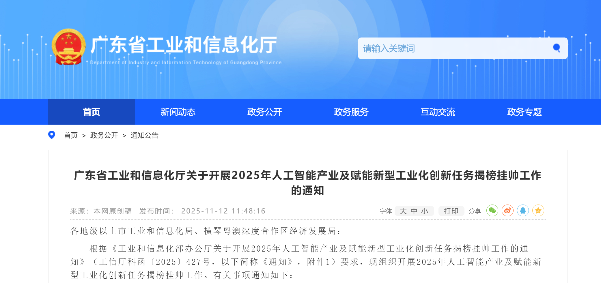 关于开展2025年人工智能产业及赋能新型工业化创新任务揭榜挂帅工作的通知