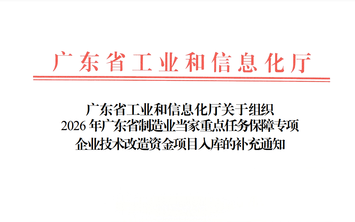 关于组织2026年广东省制造业当家重点任务保障专项企业技术改造资金项目入库的补充通知